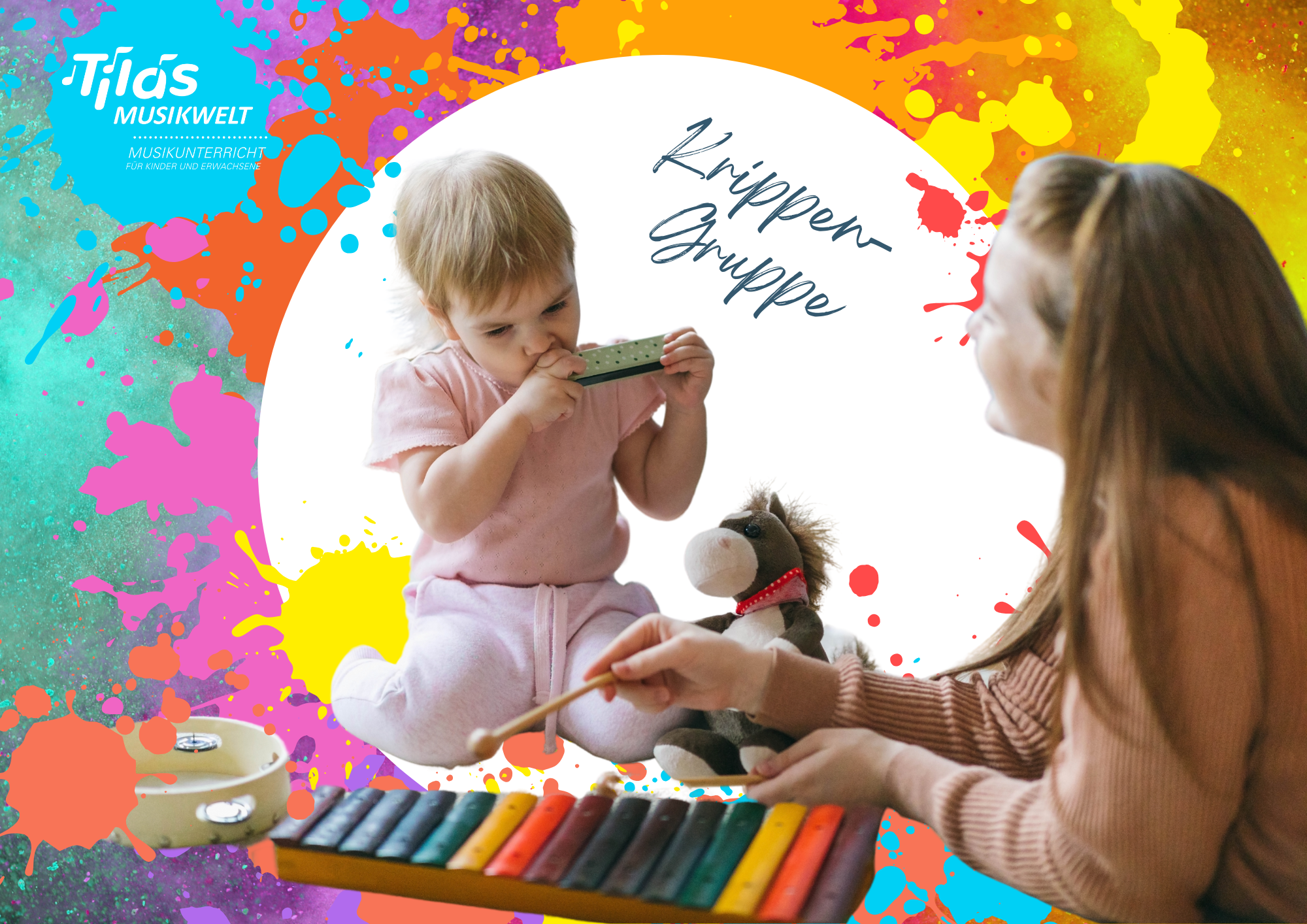 Krippen-Gruppe Auch für die Krippe bieten wir den perfekten Start!Von Anfang an ebnen wir den Weg für einen spielerisch leichten Zugang zur Welt von Klang und Ton. Mit einer Vielzahl an Liedern, lustigen Tänzen, mit Trommeln und Rasseln und sogar mit unseren großen Instrumenten kommen unsere Kleinsten in Berührung und dürfen alles einmal ausprobieren.